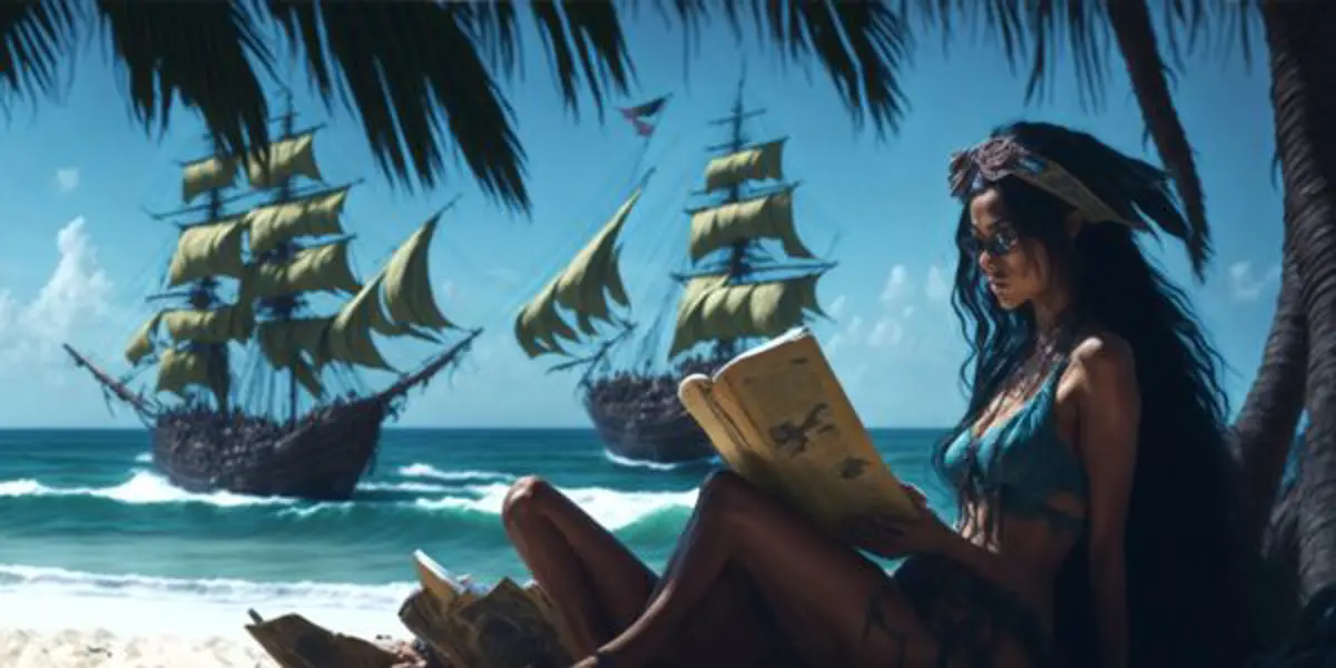 Join Alosa, a cunning and fearless pirate captain, as she embarks on a thrilling quest to retrieve a legendary hidden treasure, navigating treacherous waters and encountering mythical creatures along the way. A significant portion of the story unfolds on a vibrant and dangerous tropical island, complete with sandy shores and a pirate's lair.